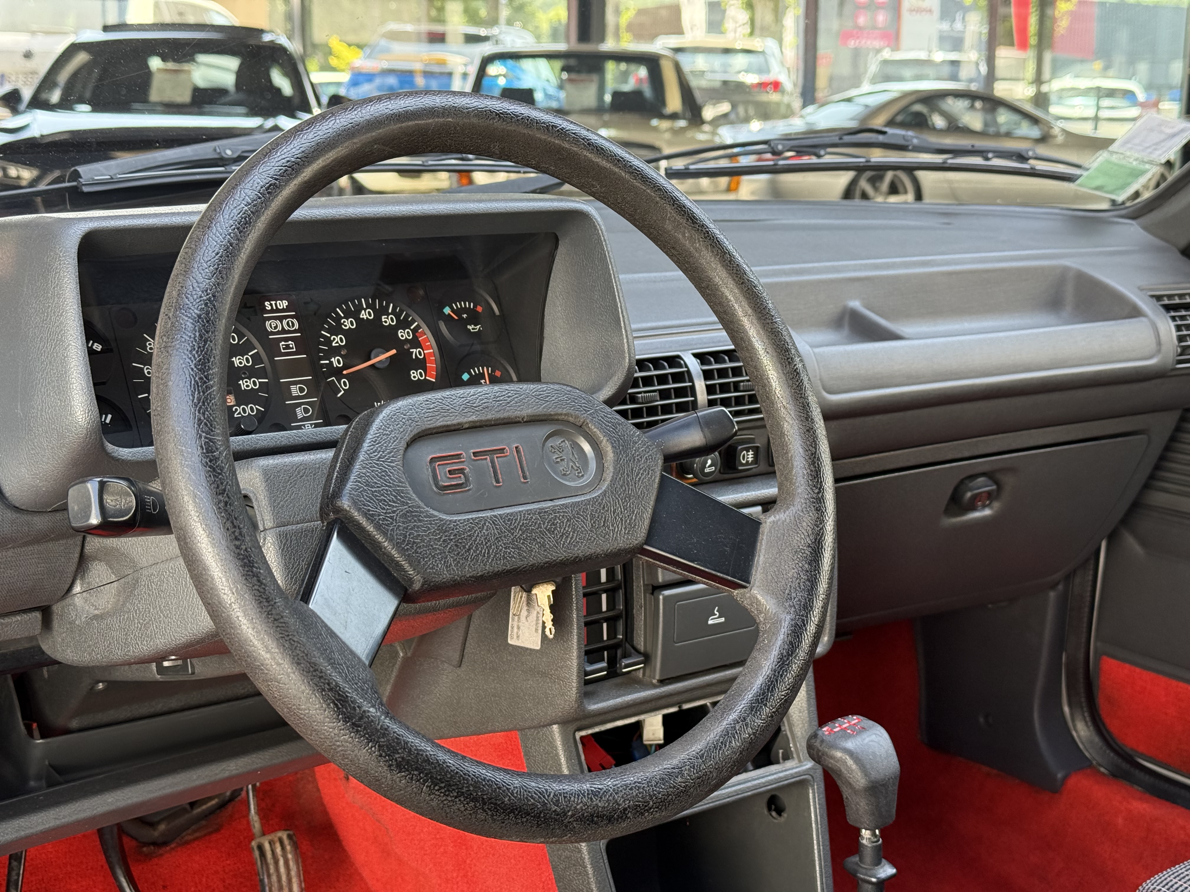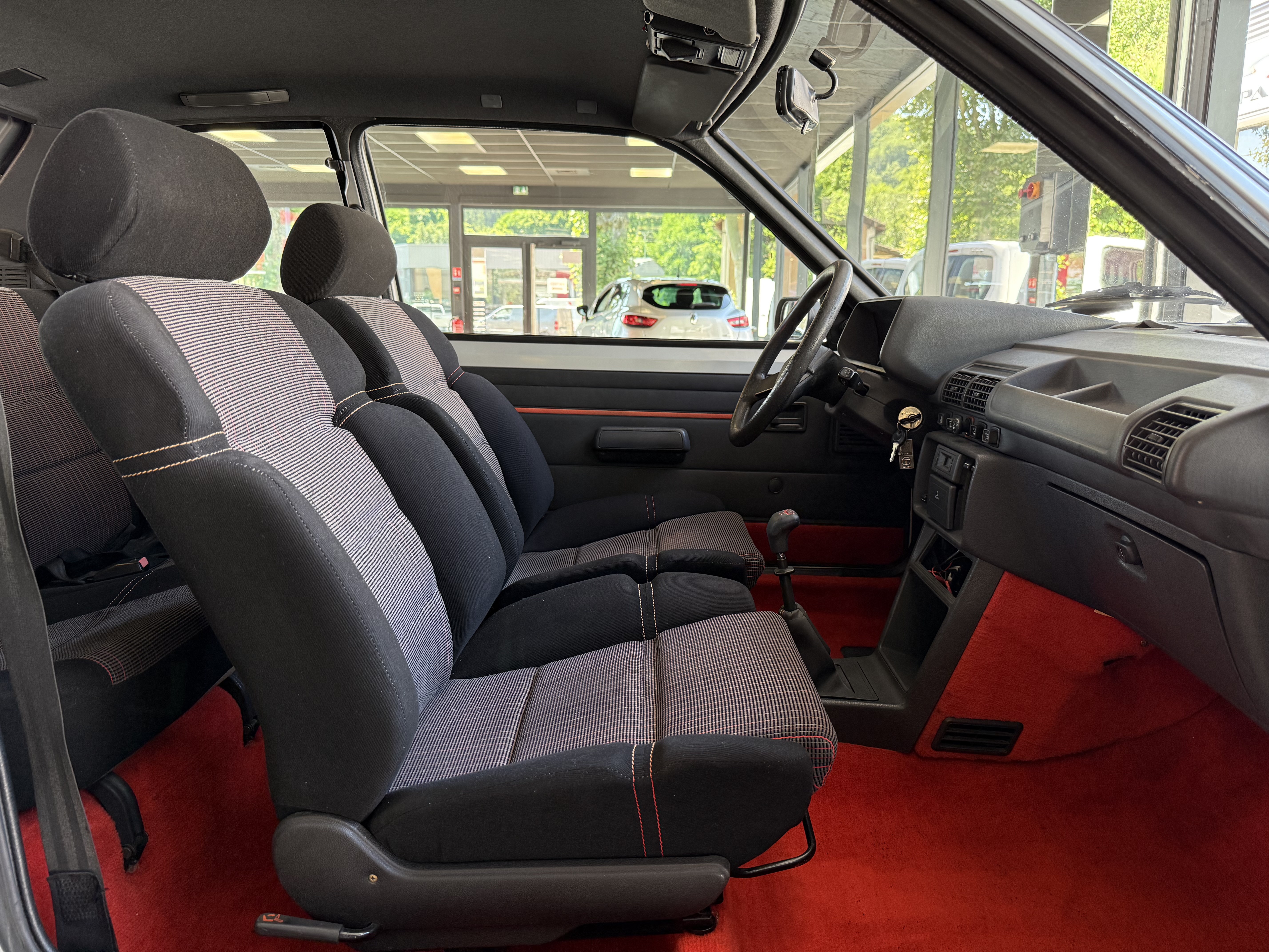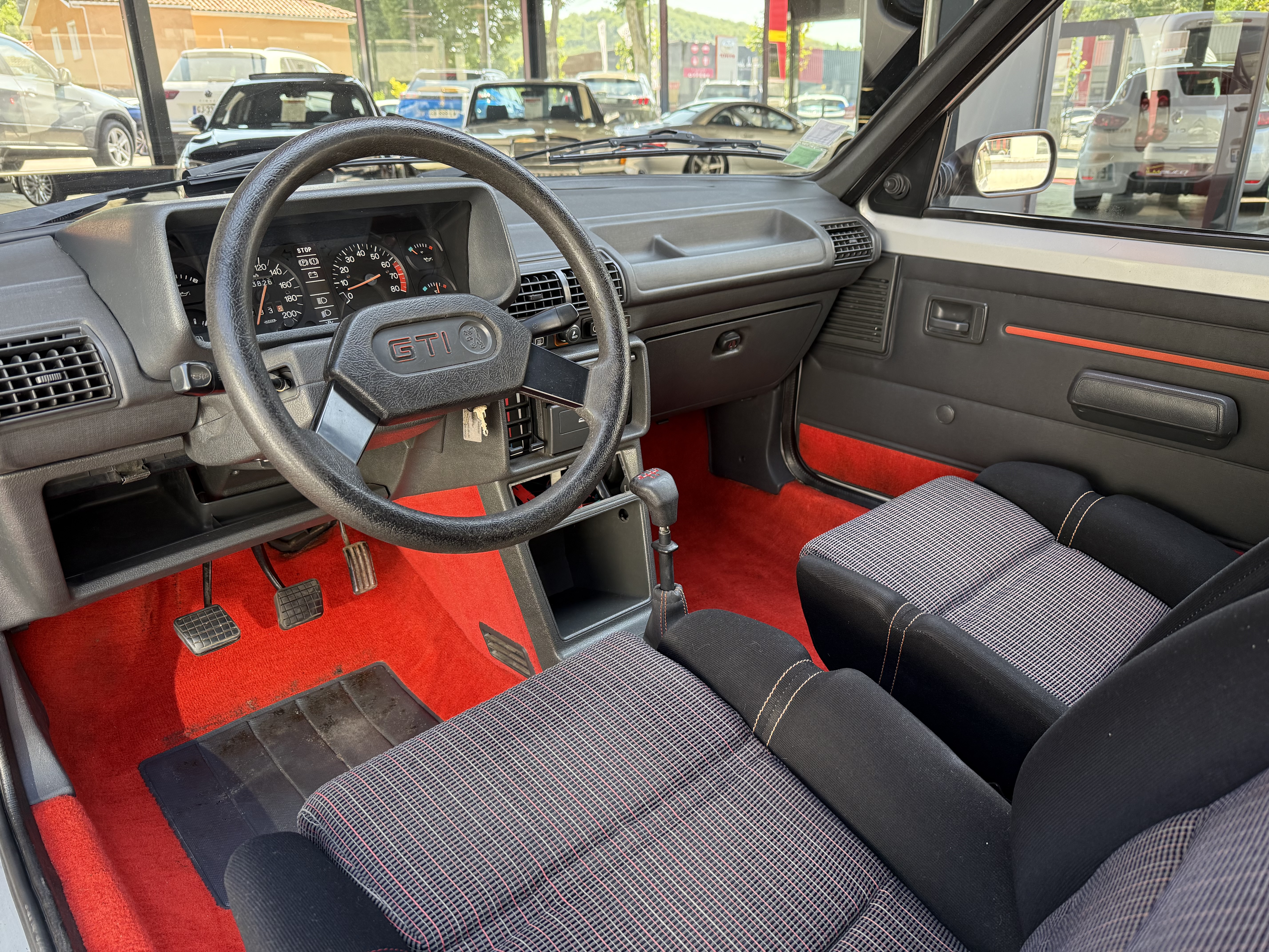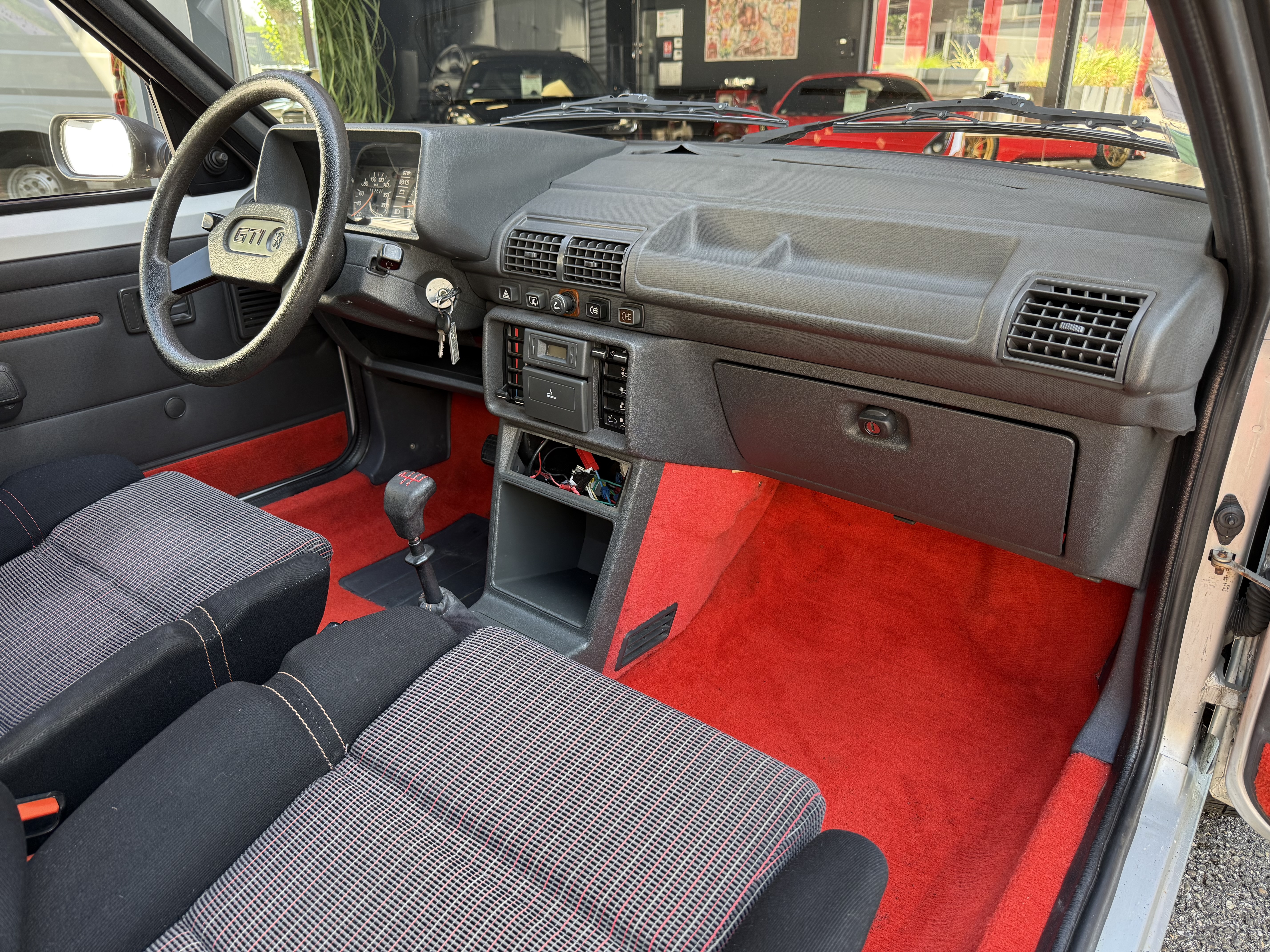 Mythique, vrai 1984 (seulement 4 mois de fabrication - du 16 février au 30 juin - avant de passer à partir du 01 juillet au millésime 85). Avec toutes ses spécificités qui la rendent rare et donc très recherchée (pommeau de vitesse carré avec grille type BE1, volant en plastique avec fausse couture à l'intérieur et lettres GTI détachées, commodos carrés, compteur avec symbole indicateur de la température d'huile différent). En options d'époque, le rétro passager et les vitres électriques.