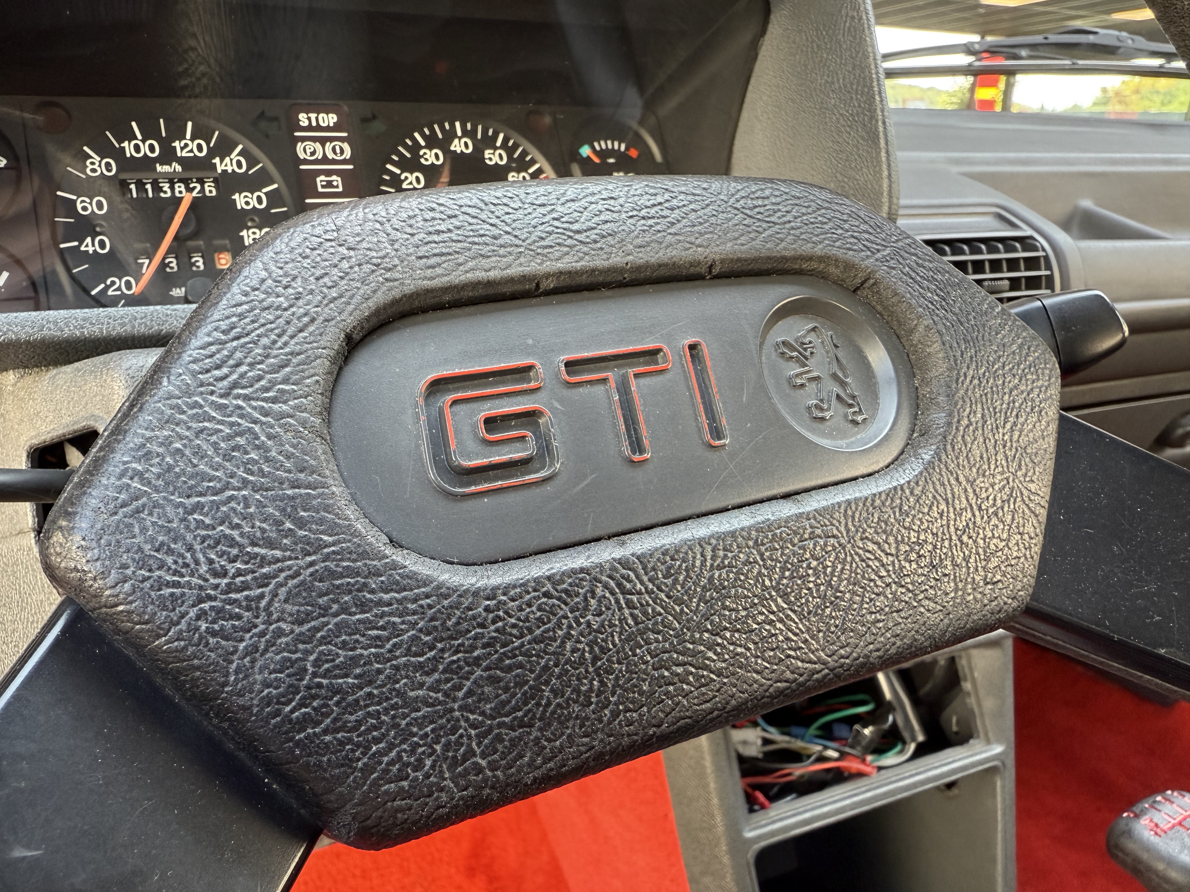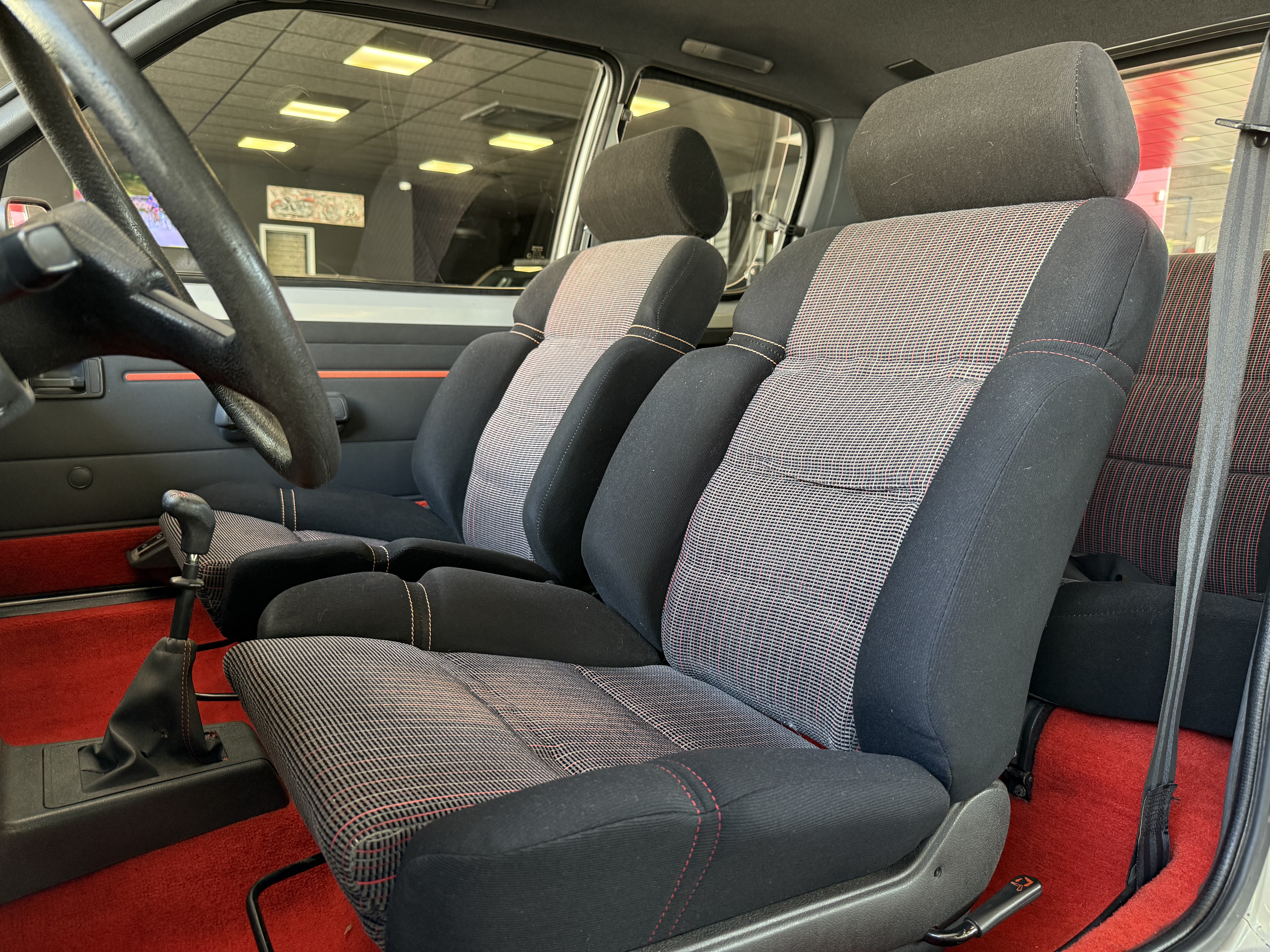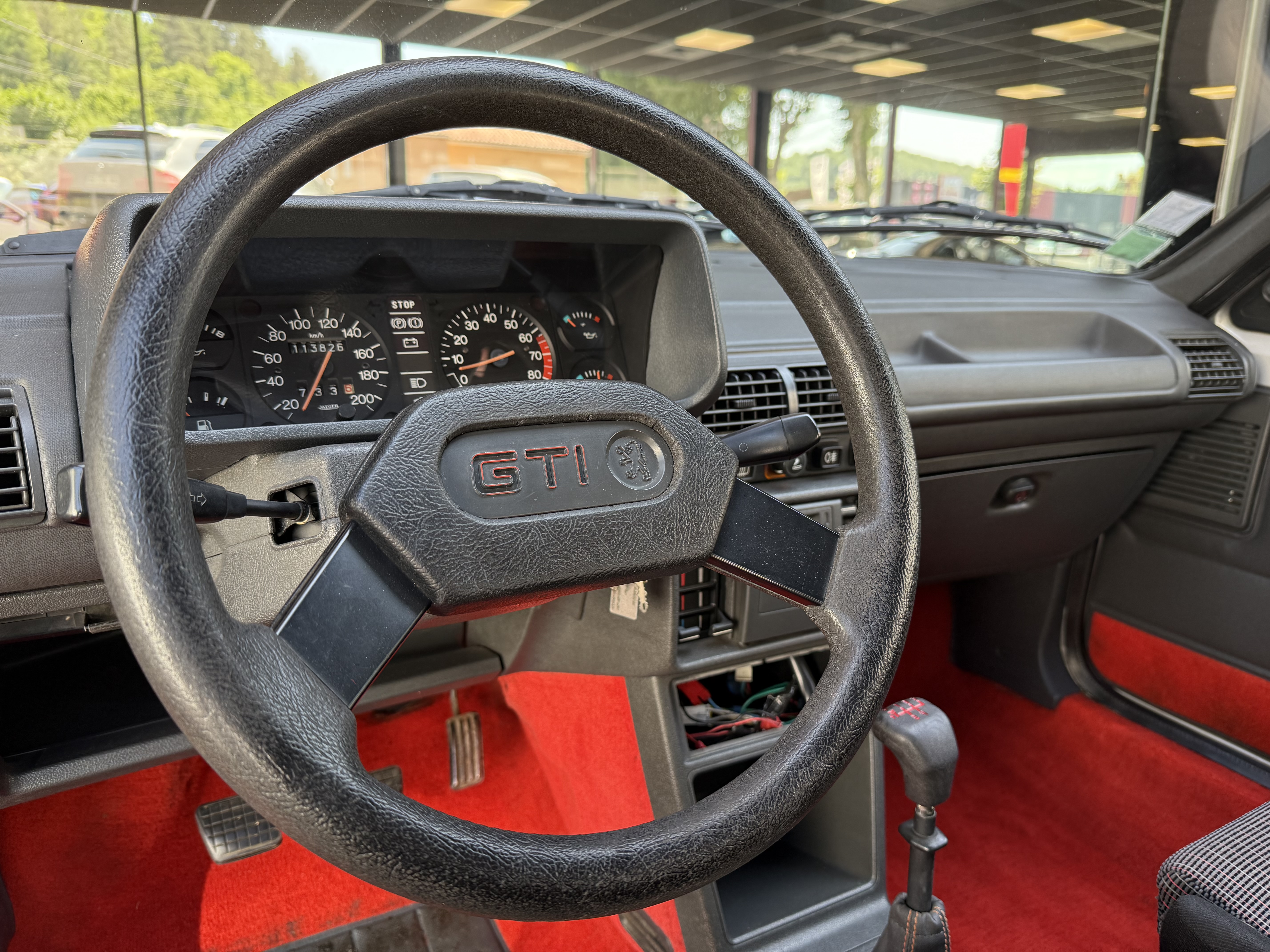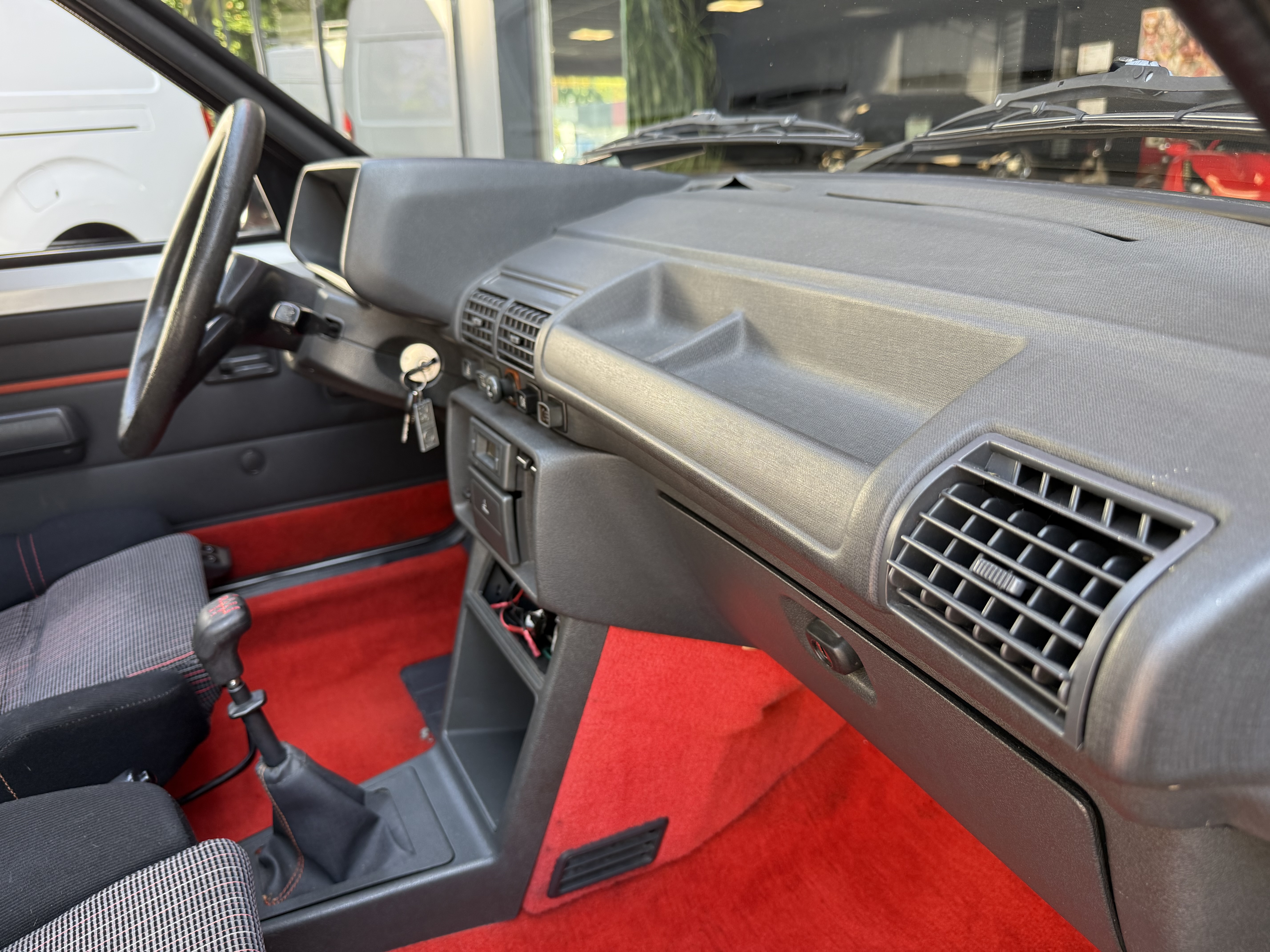 Mythique, vrai 1984 (seulement 4 mois de fabrication - du 16 février au 30 juin - avant de passer à partir du 01 juillet au millésime 85). Avec toutes ses spécificités qui la rendent rare et donc très recherchée (pommeau de vitesse carré avec grille type BE1, volant en plastique avec fausse couture à l'intérieur et lettres GTI détachées, commodos carrés, compteur avec symbole indicateur de la température d'huile différent). En options d'époque, le rétro passager et les vitres électriques.