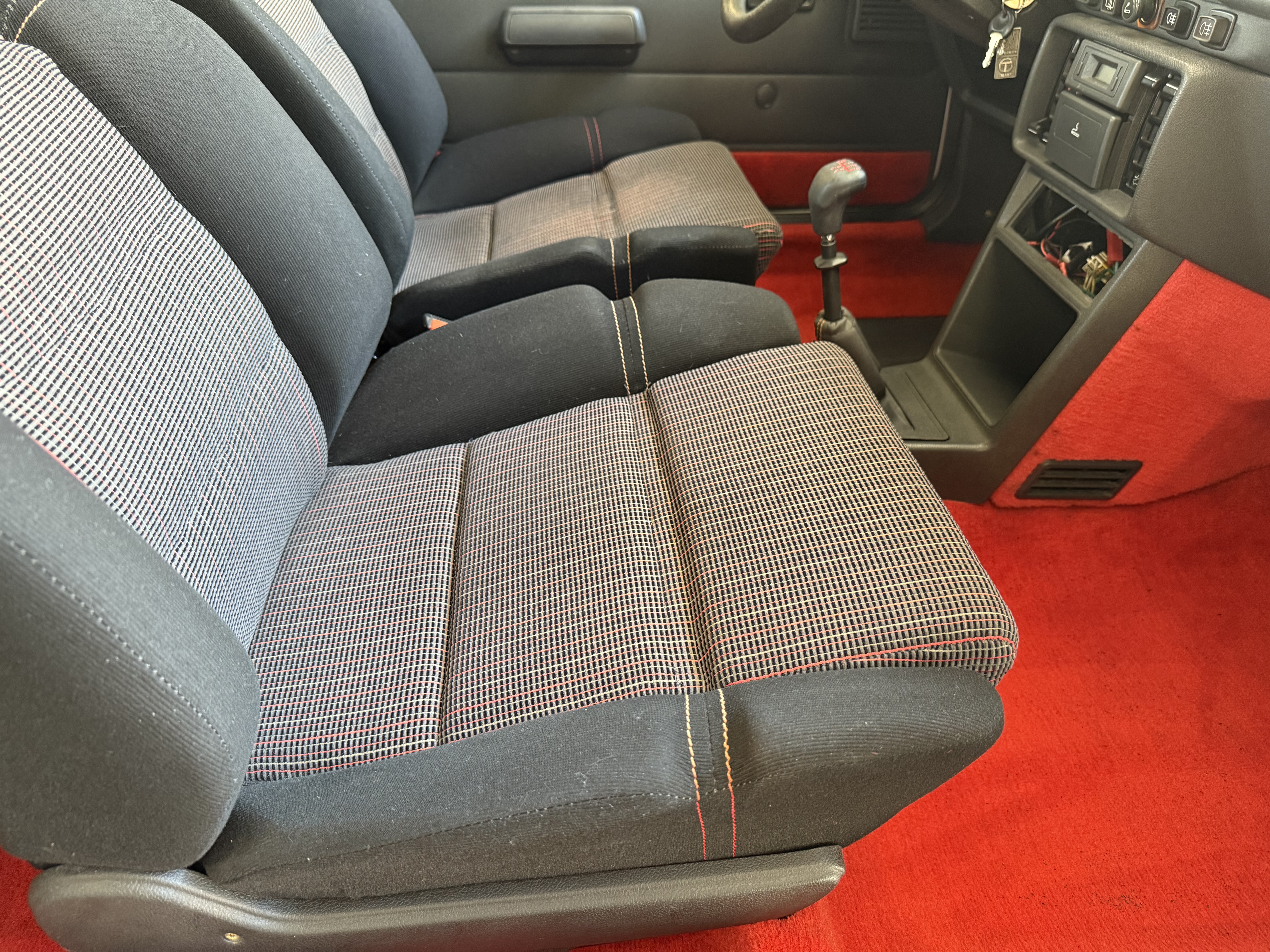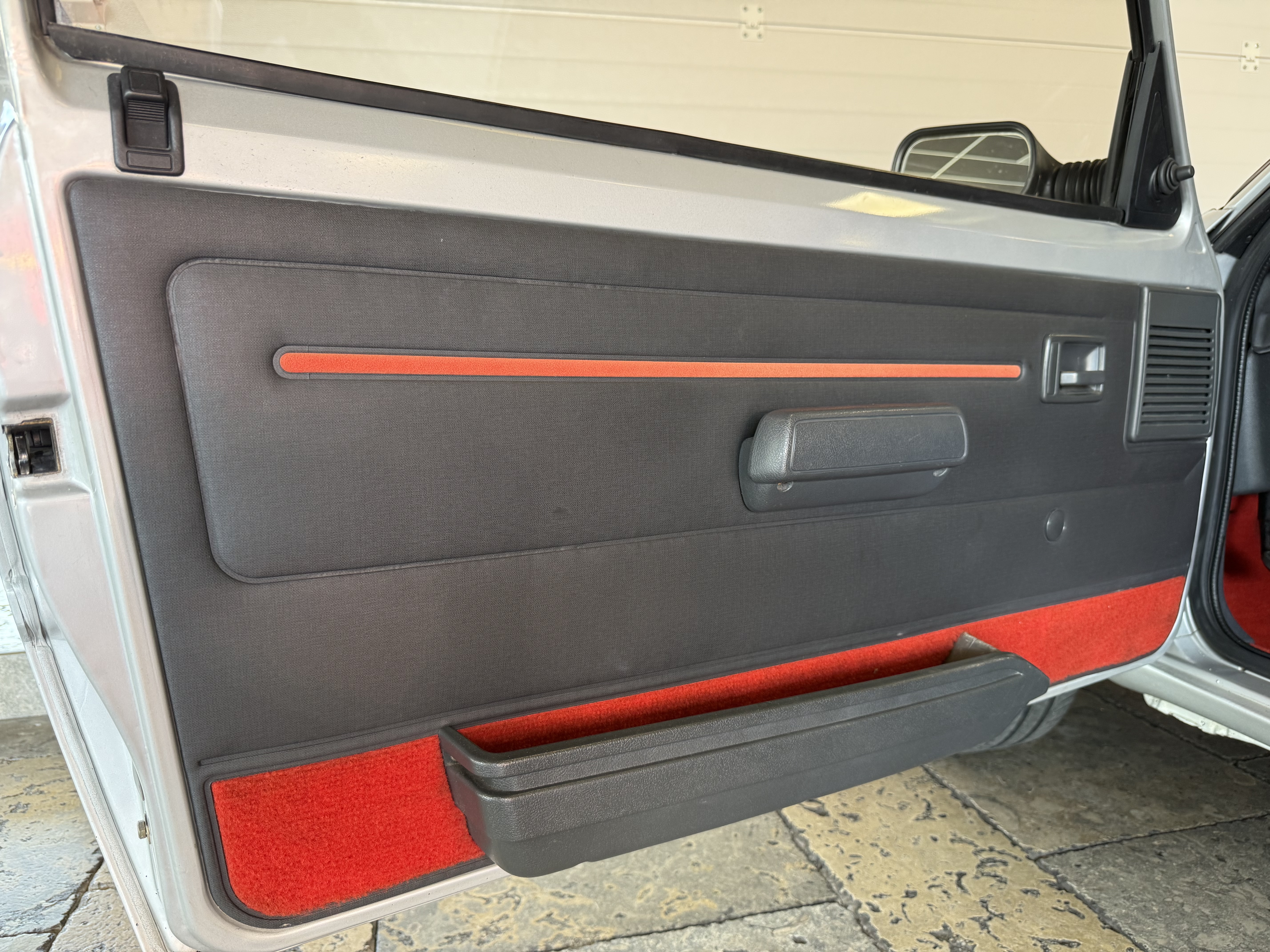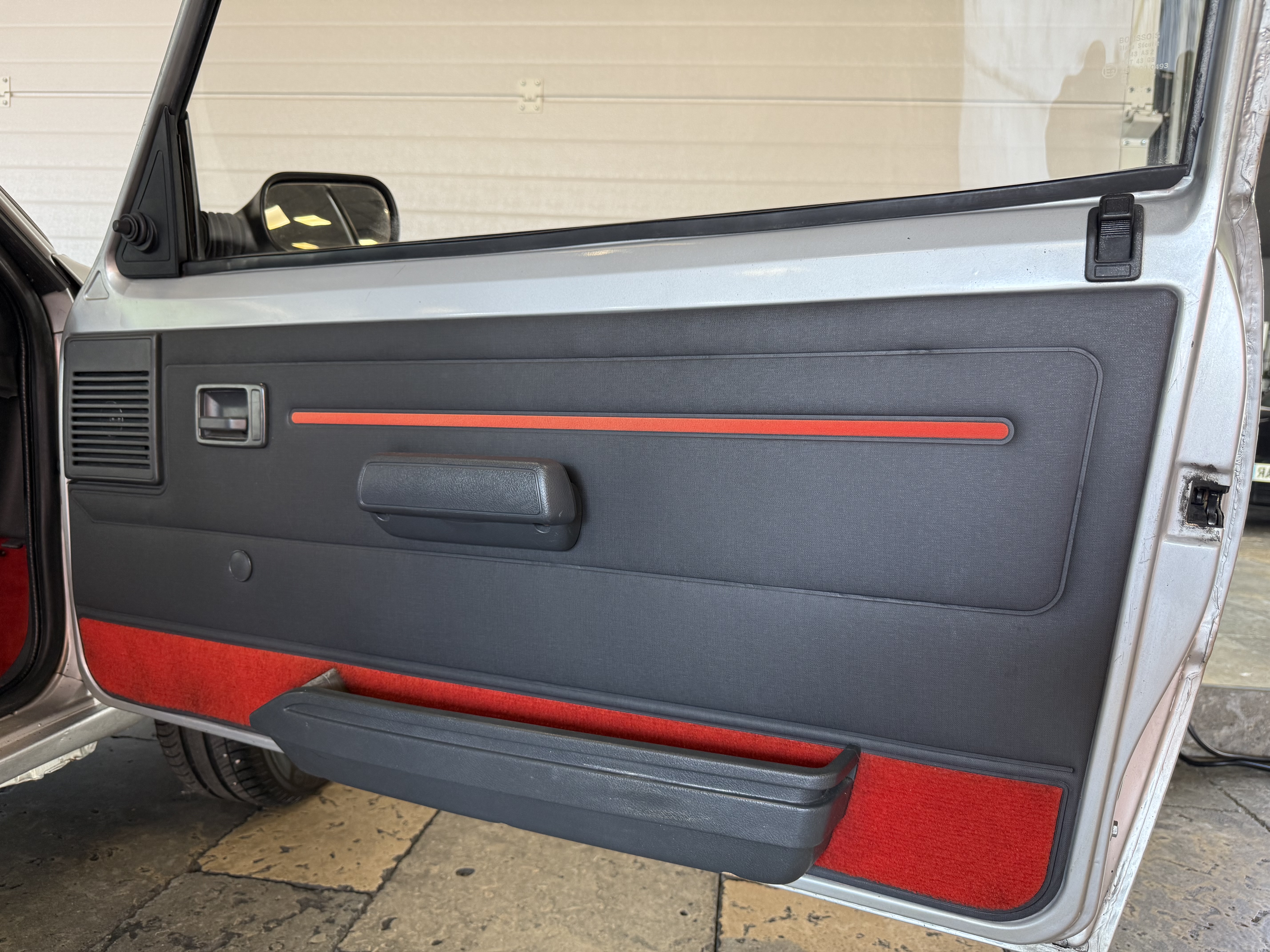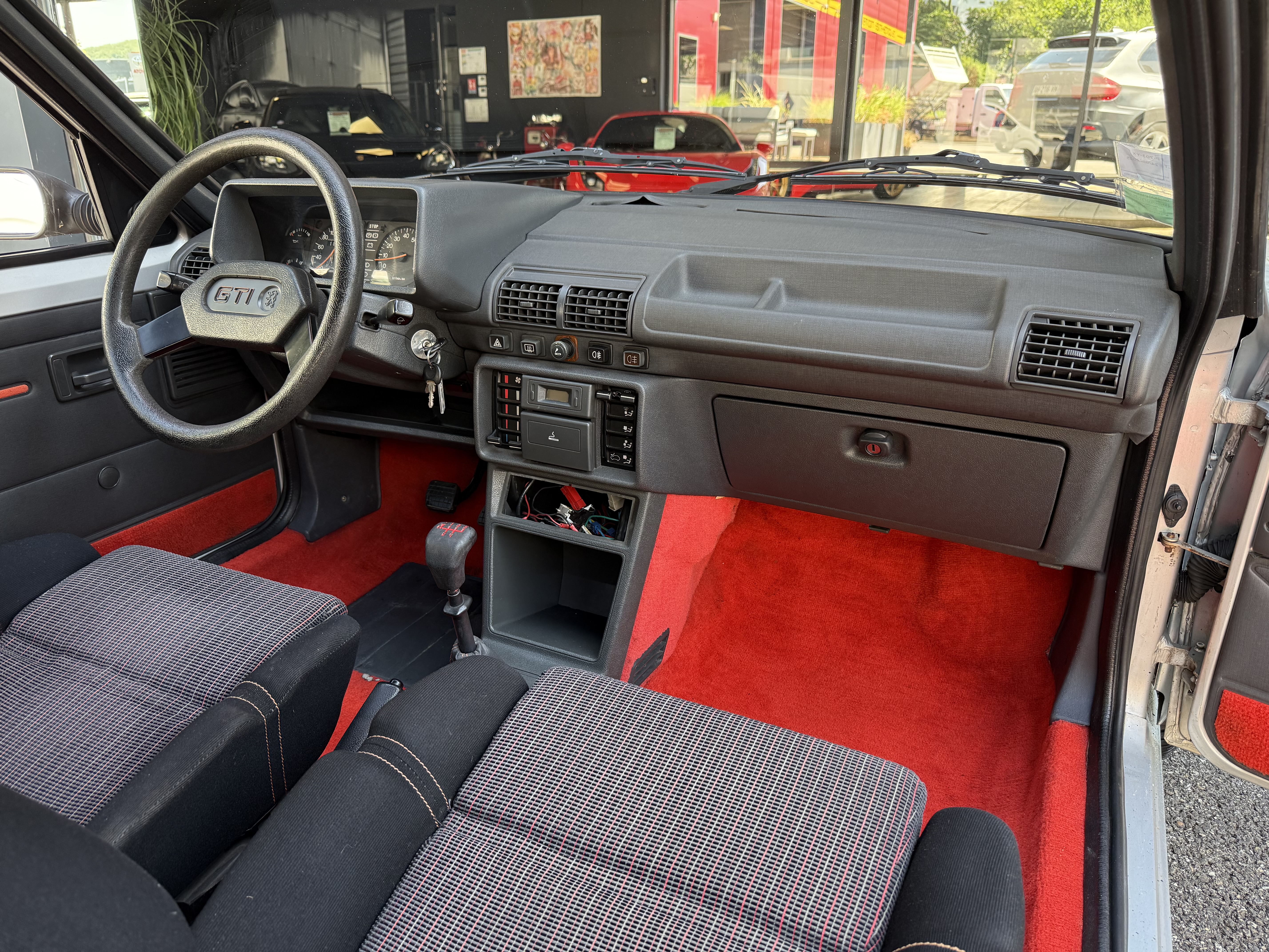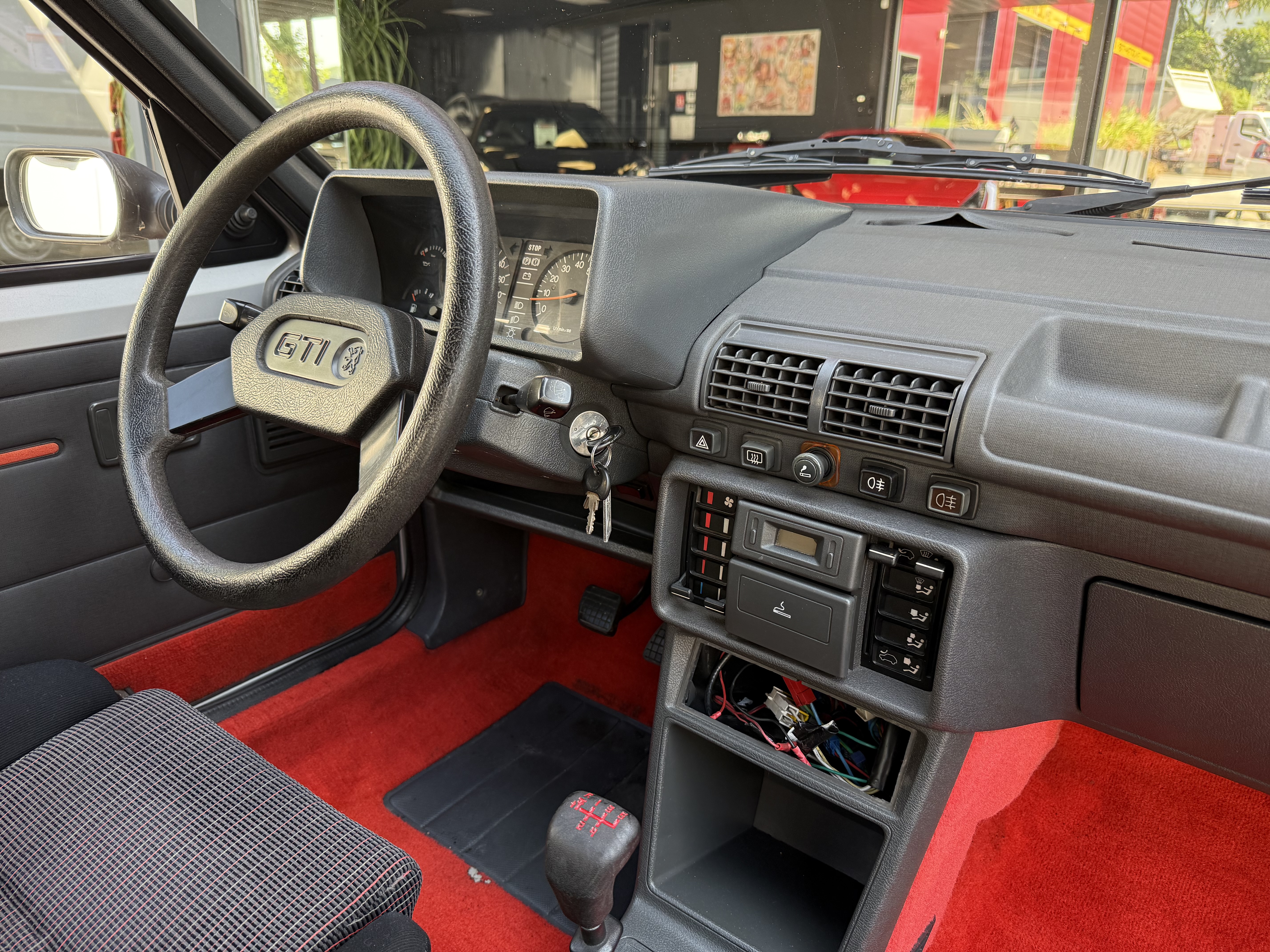 Mythique, vrai 1984 (seulement 4 mois de fabrication - du 16 février au 30 juin - avant de passer à partir du 01 juillet au millésime 85). Avec toutes ses spécificités qui la rendent rare et donc très recherchée (pommeau de vitesse carré avec grille type BE1, volant en plastique avec fausse couture à l'intérieur et lettres GTI détachées, commodos carrés, compteur avec symbole indicateur de la température d'huile différent). En options d'époque, le rétro passager et les vitres électriques.