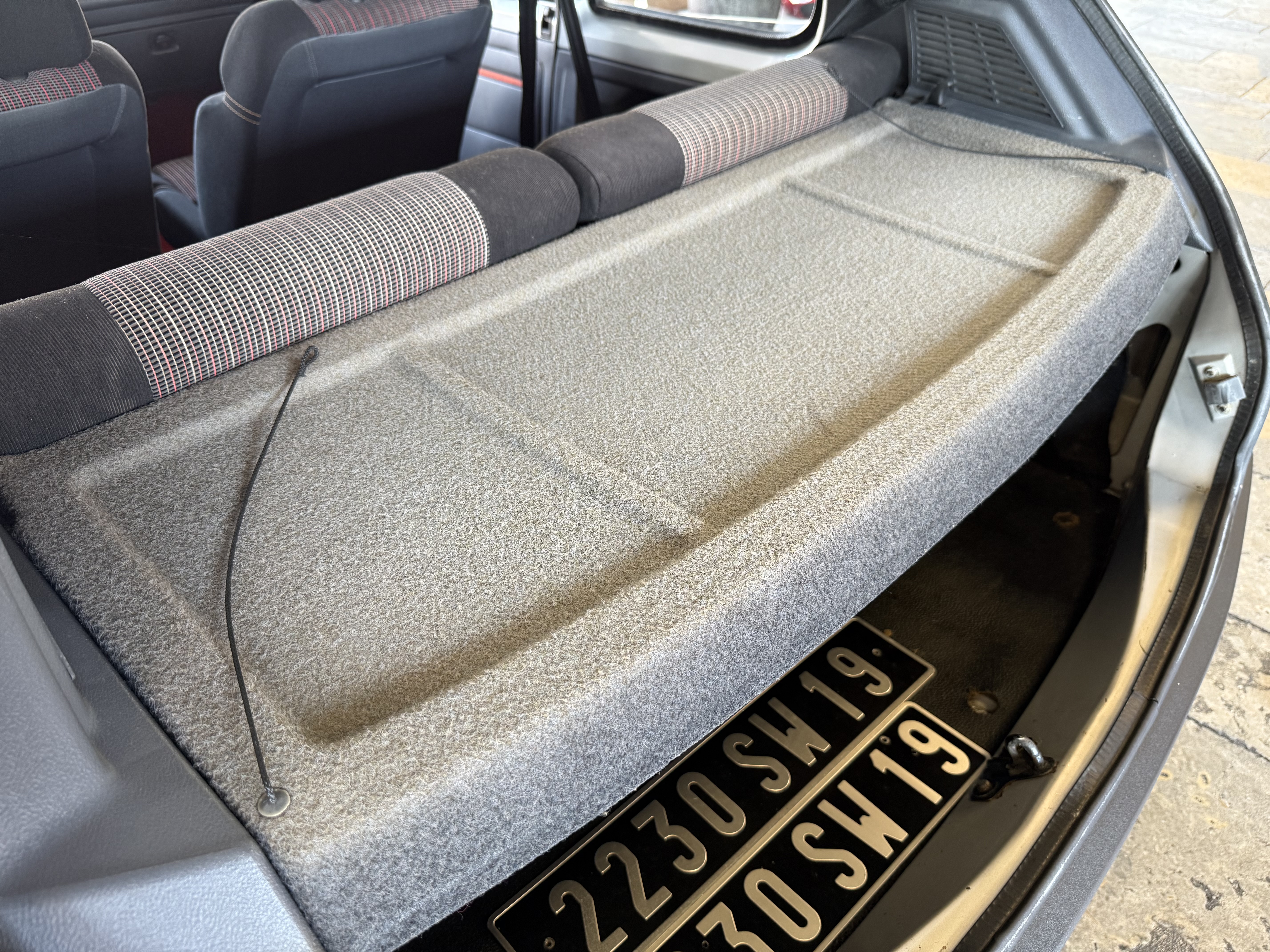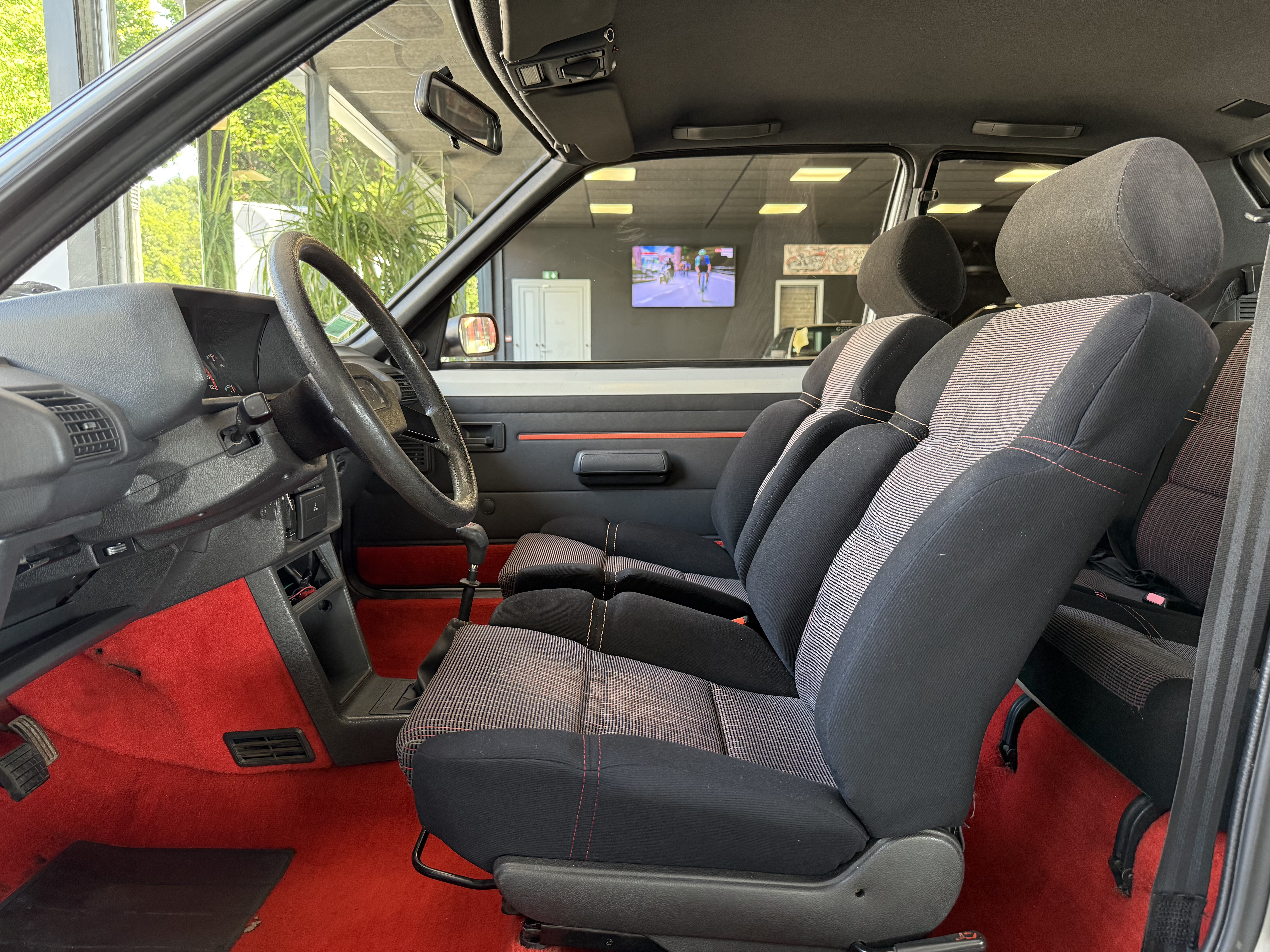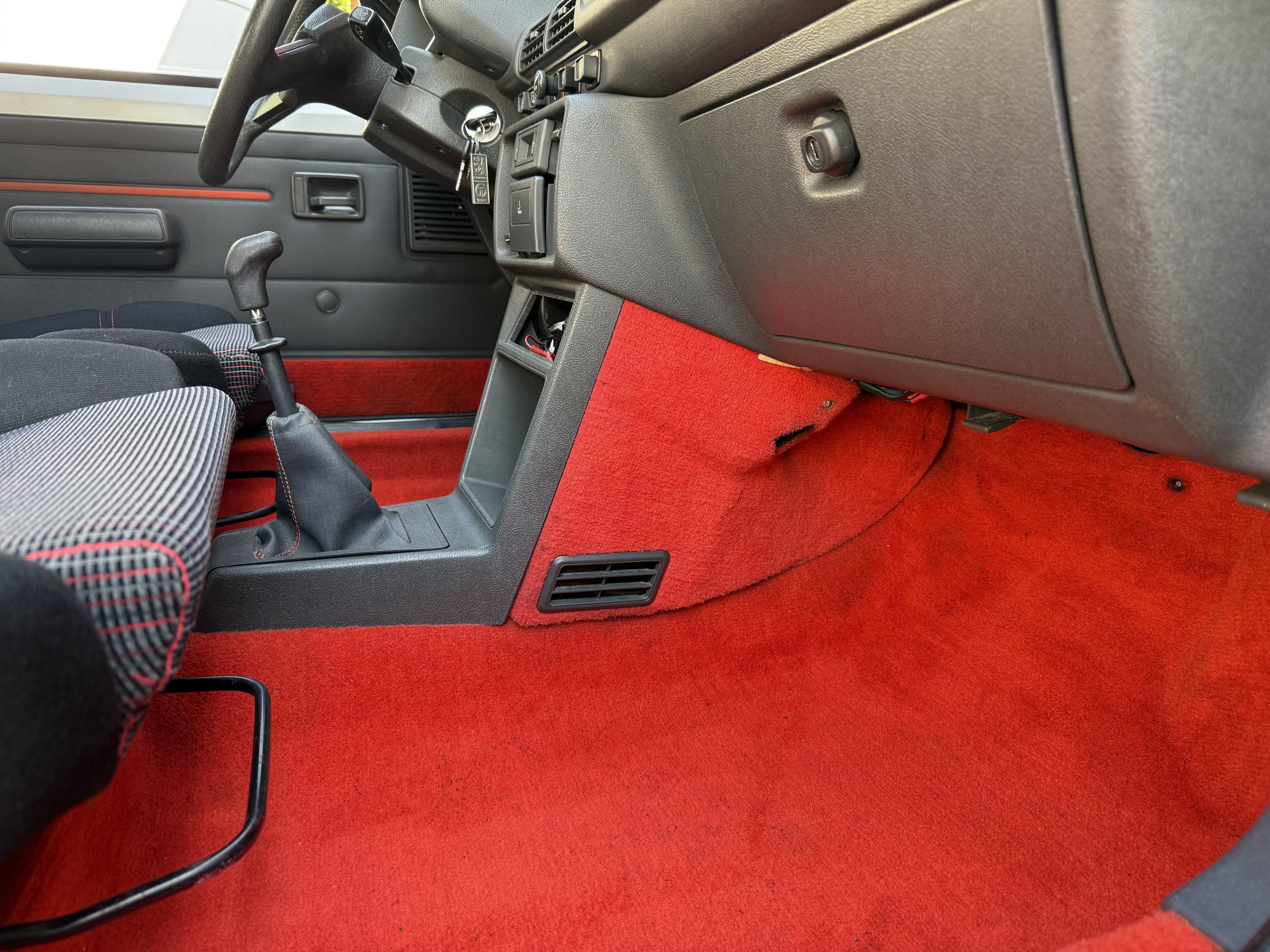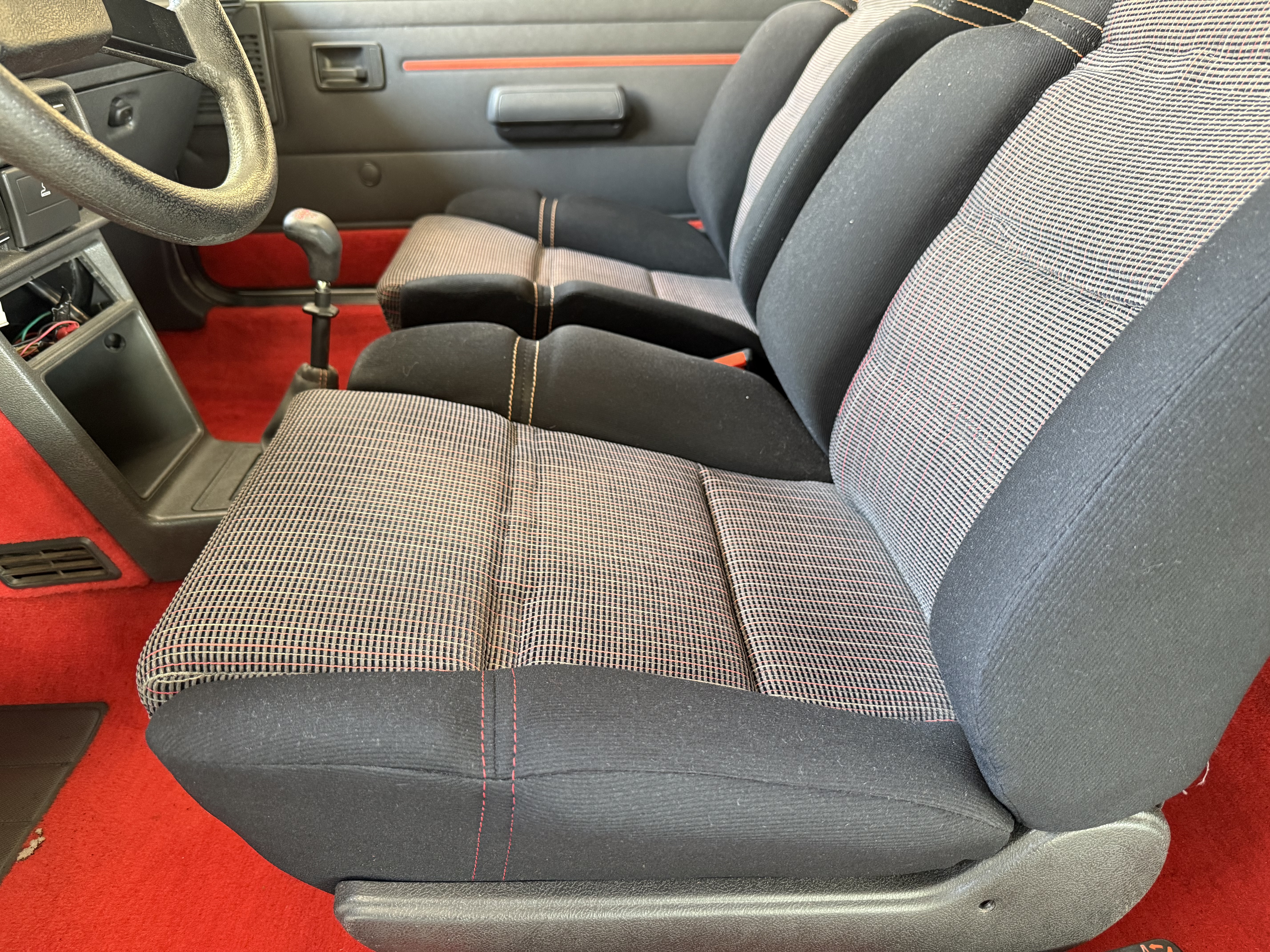 Mythique, vrai 1984 (seulement 4 mois de fabrication - du 16 février au 30 juin - avant de passer à partir du 01 juillet au millésime 85). Avec toutes ses spécificités qui la rendent rare et donc très recherchée (pommeau de vitesse carré avec grille type BE1, volant en plastique avec fausse couture à l'intérieur et lettres GTI détachées, commodos carrés, compteur avec symbole indicateur de la température d'huile différent). En options d'époque, le rétro passager et les vitres électriques.