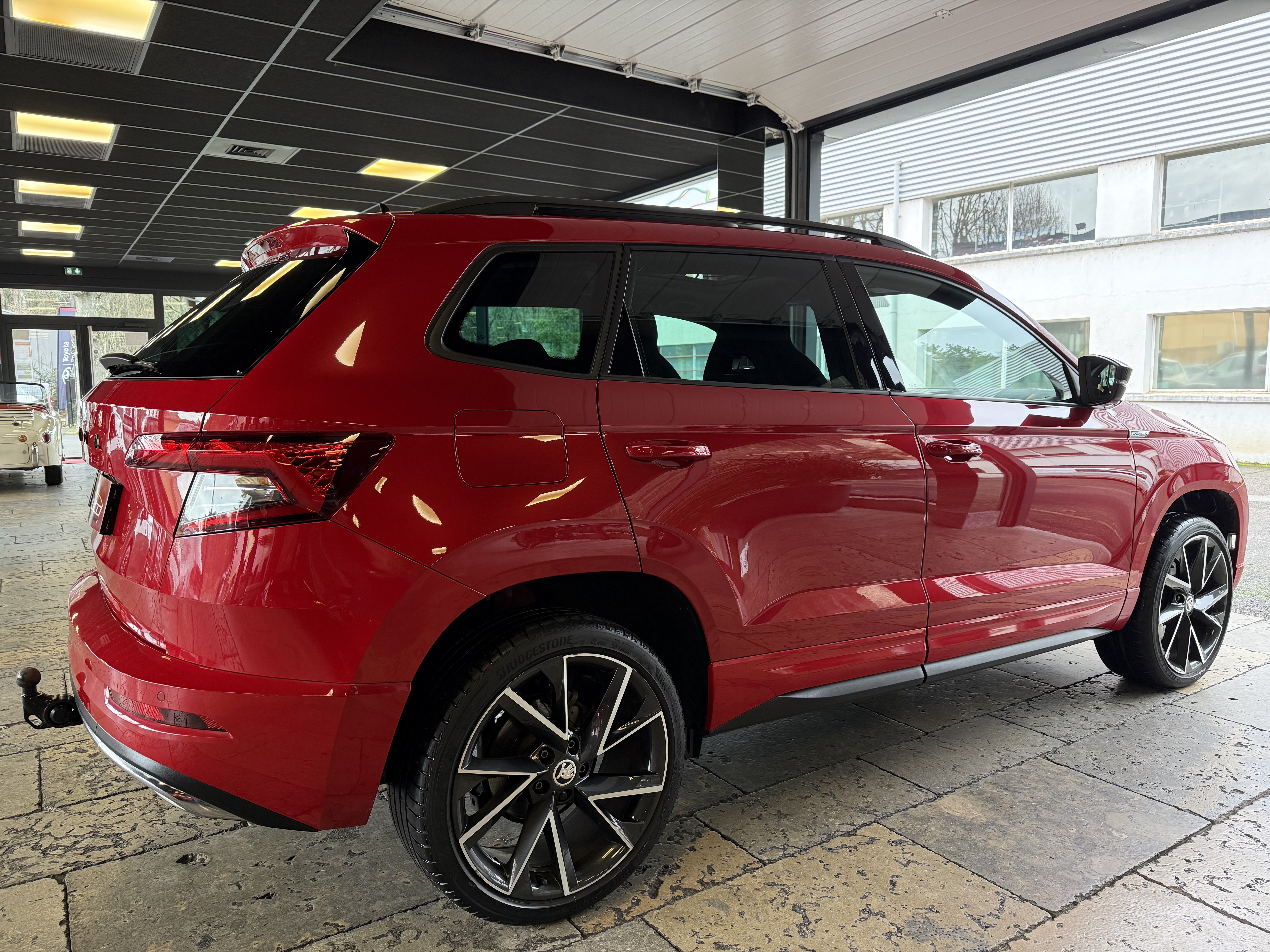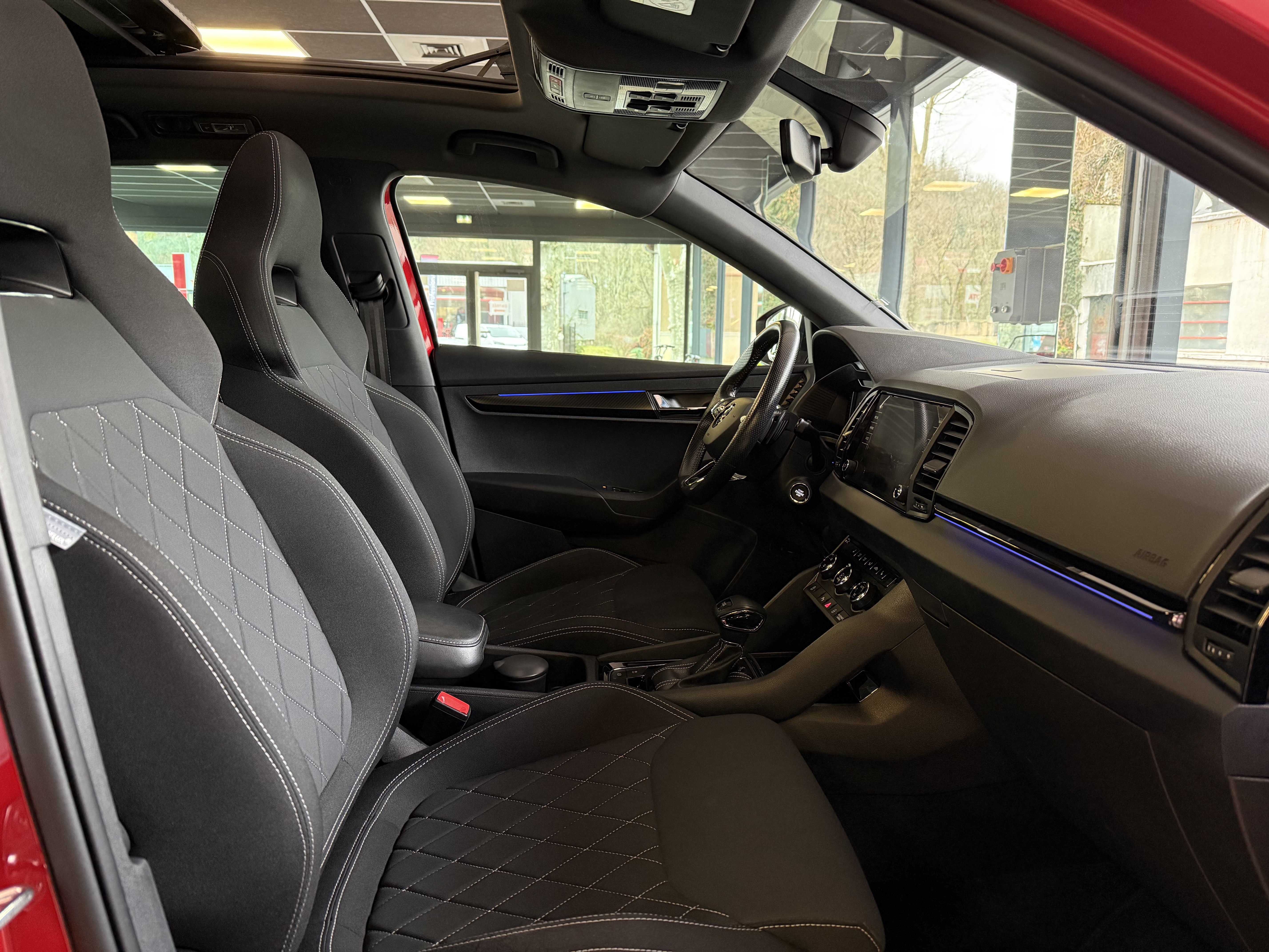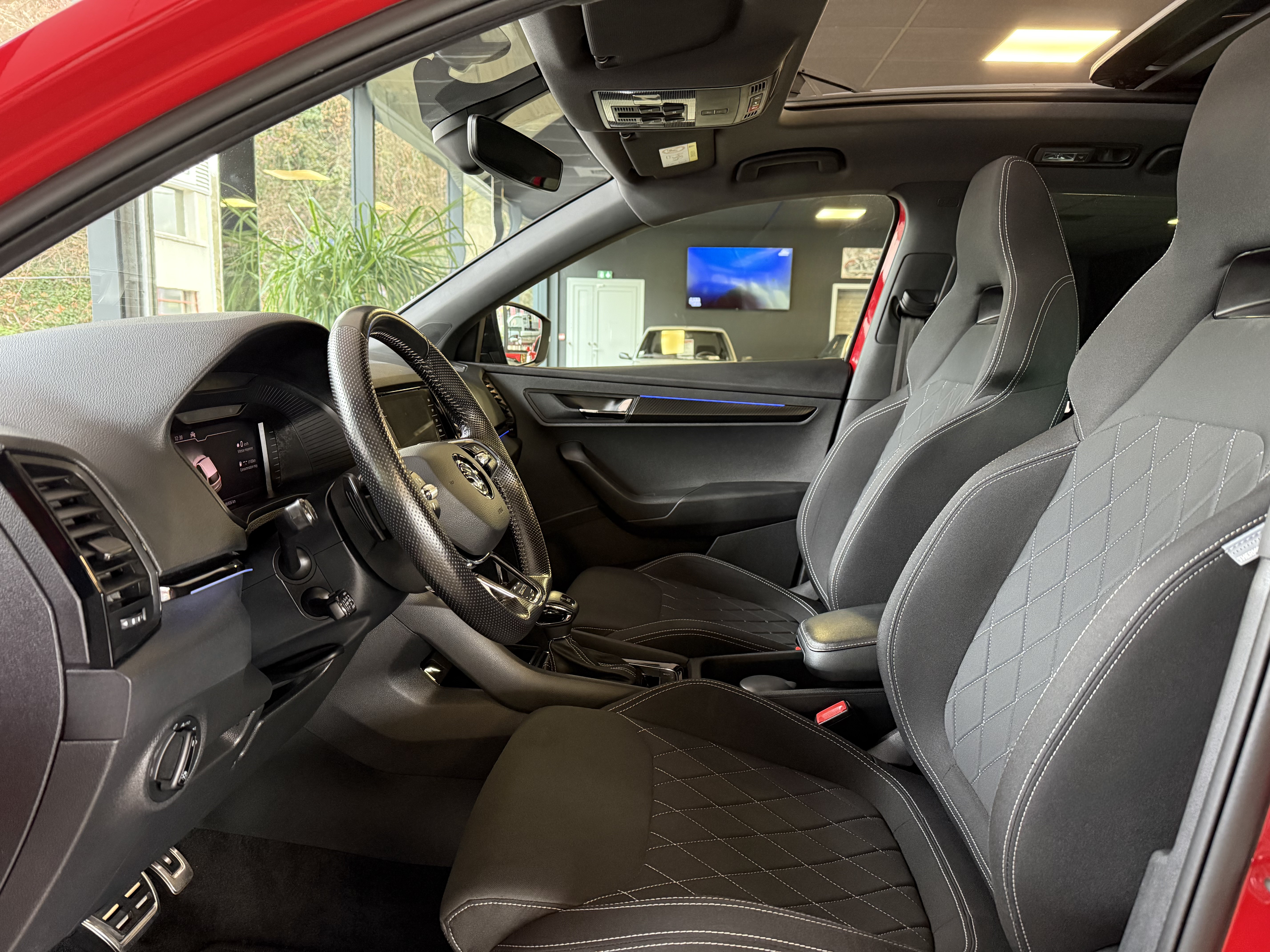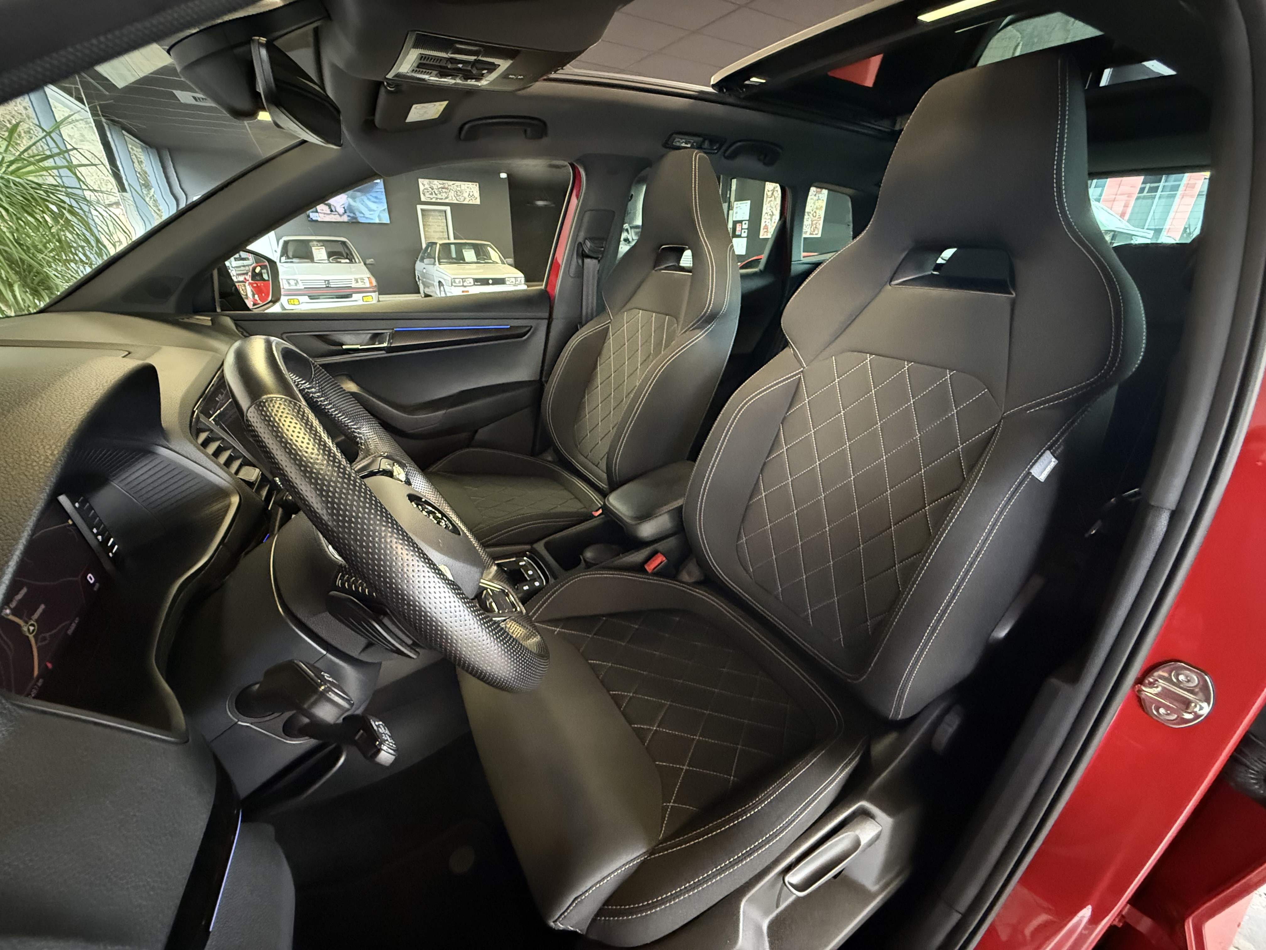 Options : GPS / Bluetooth (inclut musique en streaming & connexion téléphone), SmartLink+ sans fil (Apple CarPlay / Android Auto / Mirror Link / Smargate), hayon électrique (455€), peinture premium "Rouge Velvet / Noir Cristal" (750€), toit ouvrant / panoramique (1110€), Pack transport (boîte de rangement fixe dans le coffre / filet de sécurité / préparation attelage avec crochet amovible électriquement 750€), sièges sport chauffants (210€), Digital Cockpit, Pack d'éclairage d'ambiance intérieur à LED, volant cuir chauffant réglable en hauteur et profondeur, start & stop, Front Assist (freinage automatique d'urgence), aide au démarrage en côte, détecteur de fatigue, caméra de recul + radars de stationnements avant et arrière, clim auto bi zones, régulateur adaptatif / limiteur de vitesse, allumage auto des feux (Full LED avec système d'éclairage auto adaptatif), capteur de pluie, jantes alu 19 pouces "Vega" noires (700€), clé main libre "Kessy Full" (accès & démarrage), 4 vitres et rétros électriques dégivrants rabattables, ordinateur de bord, fermeture centralisée à distance, poste d'origine + port USB avec commandes au volant, accoudoirs avant & arrière + trappe à skis, vitres arrières teintées d'origine ,barres de toit longitudinales noires, fixation Isofix, antibrouillards, airbags, abs…