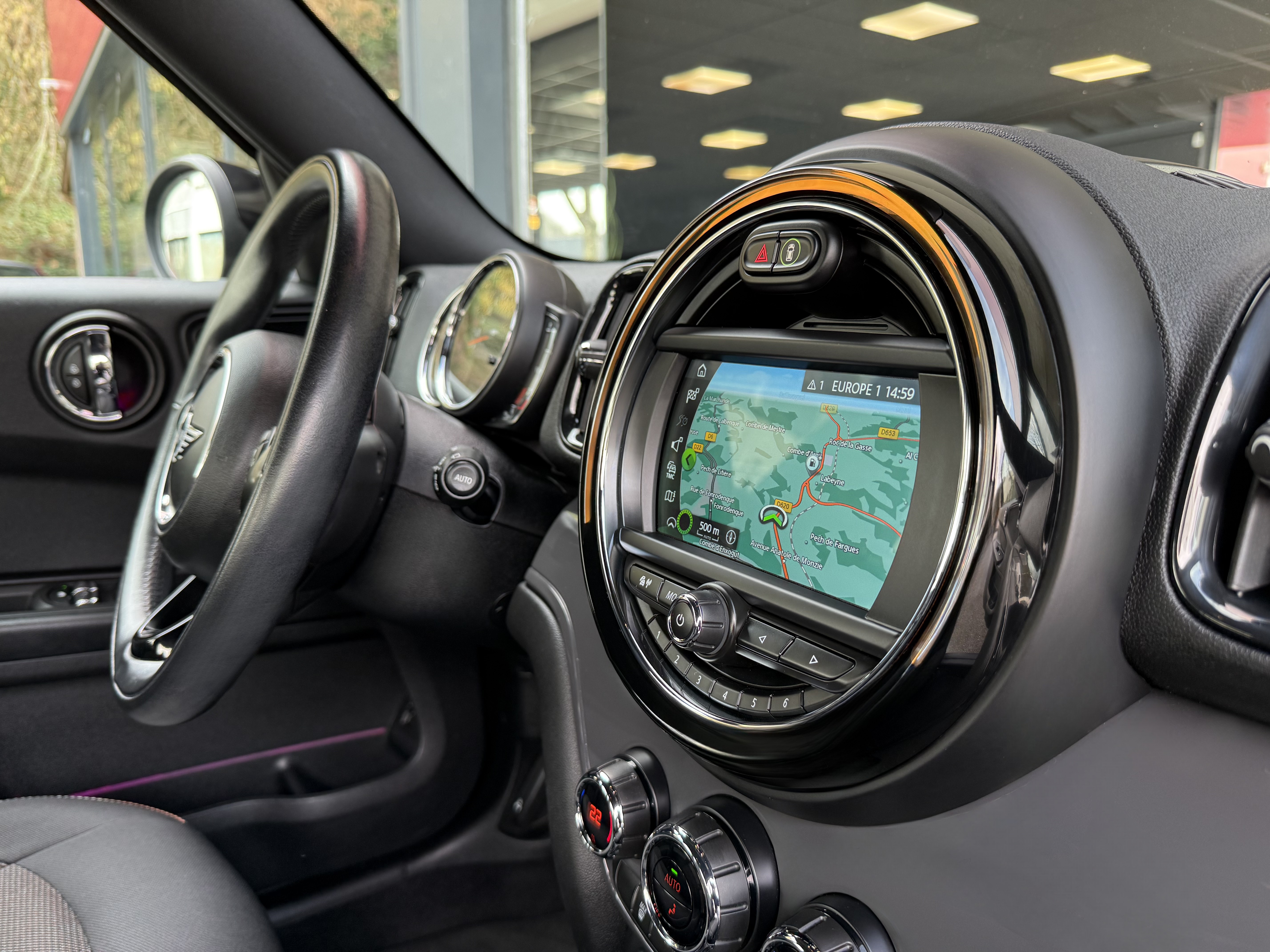 Options : GPS / Bluetooth (Pack Connected navigation inclut musique en streaming & connexion téléphone 1550€), start & stop, hayon électrique avec ouverture à distance (460€), peinture métallisée (630€), Pack d'éclairage d'ambiance intérieur (260€), ciel de toit tissu anthracite (240€), Mini driving Modes (190€), chrome line extérieur (170€), aide au démarrage en côte, caméra de recul (410€) + radars de stationnements avant et arrière (410€), clim auto bi zones, régulateur / limiteur de vitesse, allumage auto des feux (Full LED à faisceaux adaptatifs 1000€), capteur de pluie, jantes alu 18 pouces (1680€), clé main libre (accès & démarrage), volant cuir réglable en hauteur et profondeur, 4 vitres et rétros électriques dégivrants rabattables, ordinateur de bord, fermeture centralisée à distance, poste d'origine + port USB avec commandes au volant, accoudoir avant, vitres arrières teintées d'origine, fixation Isofix, antibrouillards à LED (110€), airbags, abs…